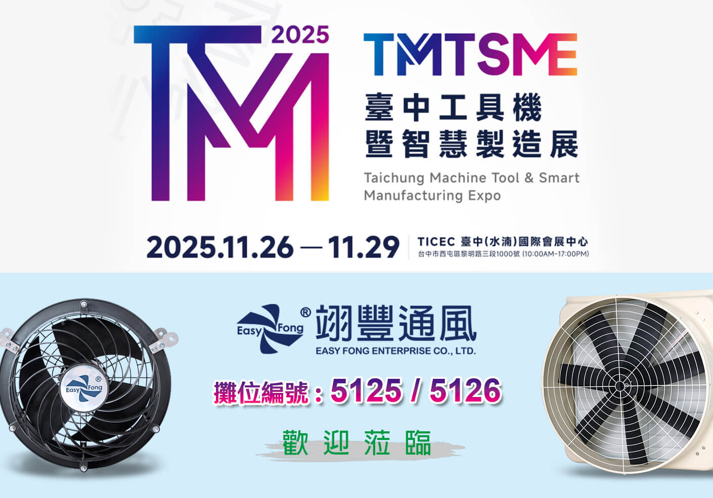 翊豐通風將參加 2025 台中工具機暨智慧製造展,展示 智慧製造環境專用通風散熱方案,提供高效穩定的廠房通風配置。