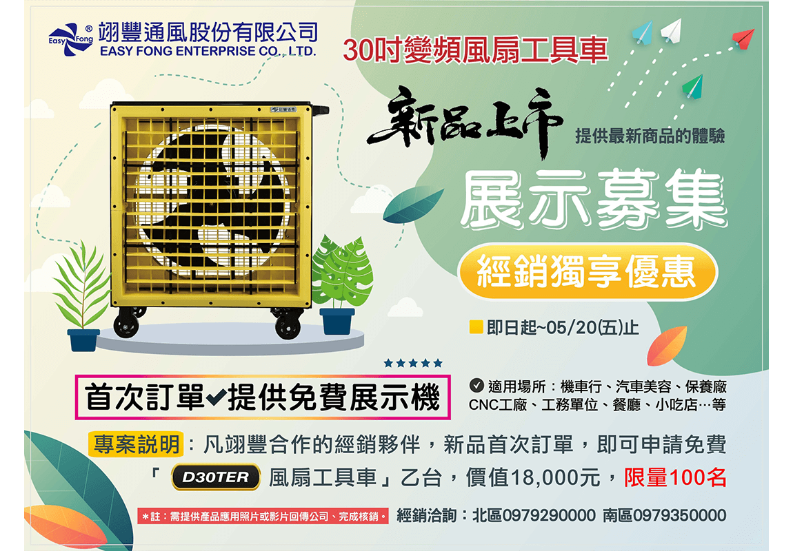 趁著新品上市,翊豐通風專為經銷商推出超值新品優惠活動,