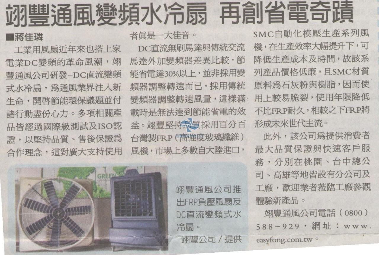 經濟日報專訪 【翊豐通風變頻水冷扇 再創省電奇蹟】