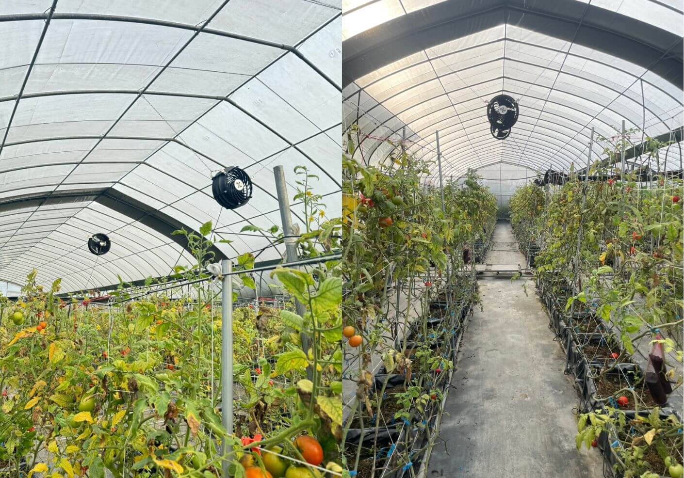 ● 增壓扇迅速排出高溫熱氣,搭配水濂牆使用時還可進一步降溫,有助於維持穩定生長環境。